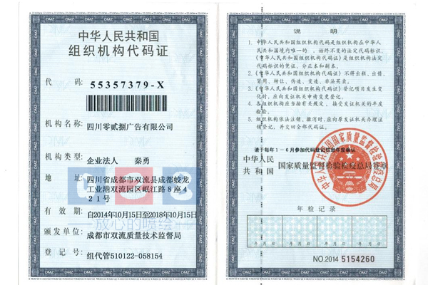 成都廣告公司的企業(yè)組織機(jī)構(gòu)代碼證