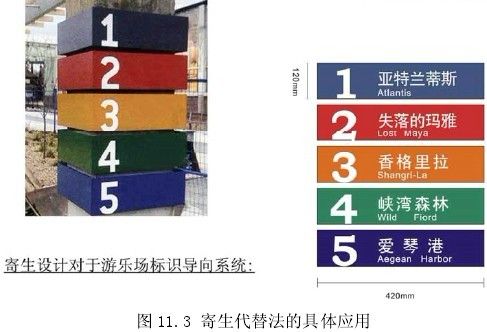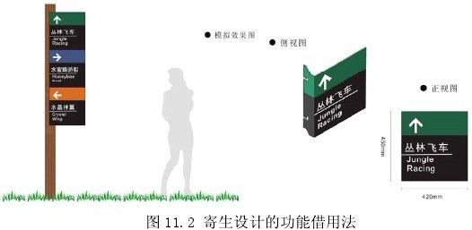 盡量利用主體本身具有的功能去實現標識導向系統的功能,這種方法也是大力提倡的。例如原有主體具有的保護功能,這樣的話也能夠減少標識導向系統本身的成本。但此種寄生借用法在使用前需要提前對標識導向系統即被宿主的功能結構有著清醒的認識,再進行重新設計。如果設計方法得當,甚至可能會使寄生體產生意想不到的效果(圖 11.2)。