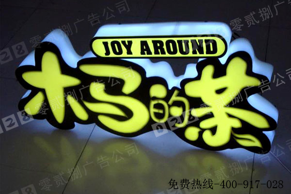 亞克力通體發(fā)光字: 字體明亮醒目(使用新型的超亮光源)、立體感強(qiáng)、色彩鮮明(多種顏色組合與壁板可以任意搭配)。