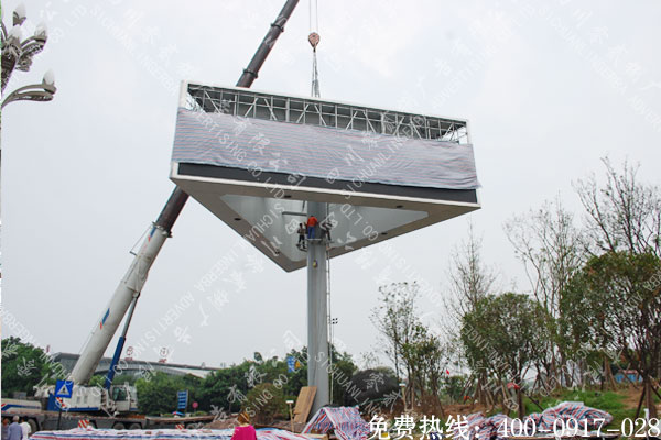 4、對單立柱廣告牌結構的受力特點缺乏認識,要讓客戶清楚的知道單立柱廣告牌的結構重量,單立柱廣告牌設計與制作的控制荷載,便于客戶正常使用,減少危險狀況的發(fā)生。