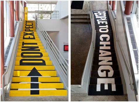 3. 每天上下班的必經(jīng)之路就是樓梯,怎么能讓它們空著呢?這其實給咱們傳播企業(yè)文化提供很好的創(chuàng)作空間。這估計是員工最愛走的樓梯了。