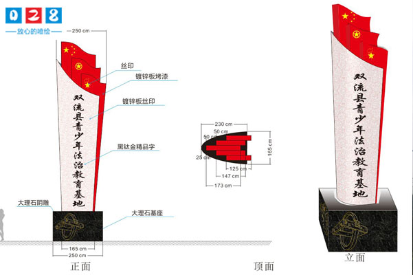 精神堡壘一般由不銹鋼或鐵管制成,也由鋁塑板,丙烯酸和其他材料制成。精神堡壘一般對(duì)房地產(chǎn),大型商場(chǎng)等都有引導(dǎo)作用。因此,表面也會(huì)被涂上絲印,使精神符號(hào)適合某個(gè)地方。引導(dǎo)和引導(dǎo)。