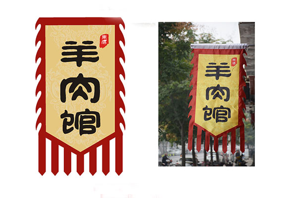 裝修公司在這幾外挑式招牌時,招牌距餐廳建筑表面有一定距離,這樣突出醒目,易于識別。例如各種立體造型招牌、雨篷、燈箱、旗幟等。例如某經(jīng)營湘菜的餐廳,在門面上方設(shè)計了一個具有傳統(tǒng)中式風(fēng)味的挑檐,上書“湘菜館”三個大字,檐下兩邊墜有大紅燈籠,格外引人注目。