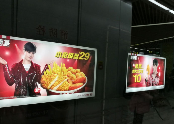 (1)內(nèi)容趨向以商業(yè)性為主,兼顧公益性和地方特色 地鐵廣告內(nèi)容以商業(yè)為主,時效性較強(qiáng),在企業(yè)推出新產(chǎn)品或季節(jié)更替、突發(fā)重大事件時,企業(yè)就會更換廣告主題和表現(xiàn)手法,且時換時新。地鐵是公共產(chǎn)所,必須肩負(fù)受眾的信息需求,擔(dān)負(fù)起一定的社會責(zé)任,因而公益廣告的公益信息內(nèi)容發(fā)布也是地鐵廣告的重要組成部分。在某種程度上,地鐵廣告還結(jié)合公益性和商業(yè)性表現(xiàn)出隱形廣告的特點(diǎn)。