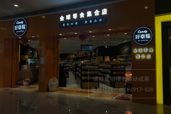 成都好幸福全球零食集合店門頭招牌裝修設(shè)計制作