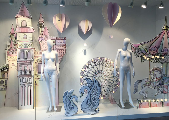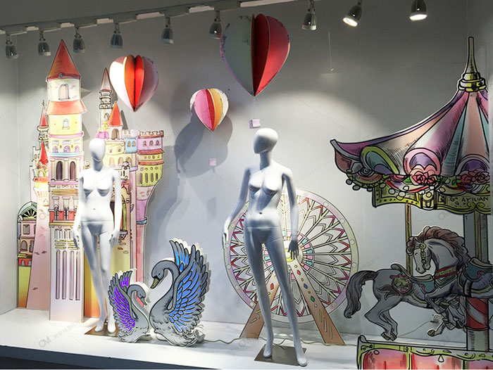 PVC板的韌性比KT板要好,如果要做彎曲的立體異型造型就選用PVC板。KT板和PVC板因為材質(zhì)輕,擺設或安裝方便,而且它們的價格便宜,所以用他們做成的櫥窗堆頭是非常適合服裝店根據(jù)每季不同主打款來進行變換的。
