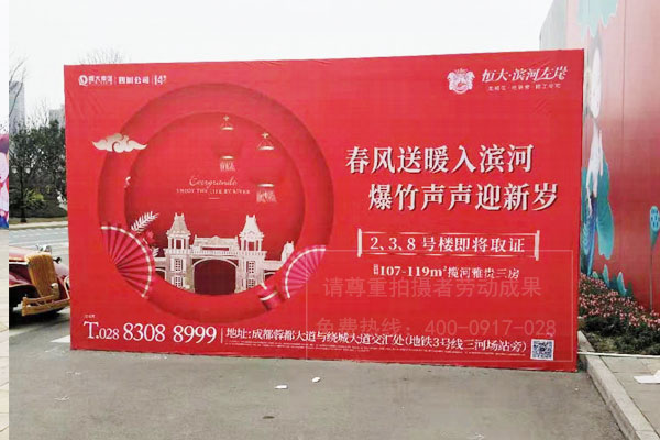 房地產(chǎn)行業(yè)每年最具銷售高峰期,莫過于年末期,返鄉(xiāng)客群量大,成交幾率高,并且市場競爭激烈,因此每一家樓盤銷售中心都會提前打好防御戰(zhàn)。對營銷中心進行案場氛圍包裝設(shè)計及現(xiàn)場廣告物料布置,其目的是營造節(jié)日氛圍,提升現(xiàn)場人氣,強化項目形象,擴展口碑效應(yīng)。下面我們四川零貳捌成都房地產(chǎn)廣告公司就以我們?yōu)楹愦竽硺潜P項目的案場包裝案例來為大家介紹一下: