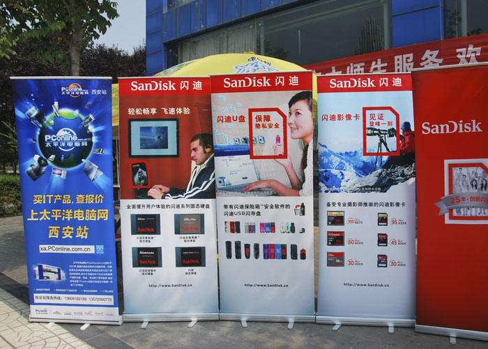 易拉寶也稱之為海報架和展示架。在廣告業(yè)中,他們也稱之為易拉架,易拉卷,易拉卷等。她們是宣傳海報圖片。它常常在有很多人的街道社區(qū)安全通道中應(yīng)用,以幫助自雇電影路演市場銷售主題活動或臨時性展臺。易拉寶的關(guān)鍵原材料是塑膠或鋁合金型材。歸納條幅的取代方式是街道社區(qū)條幅,路牌,宣傳海報,紙貼等。