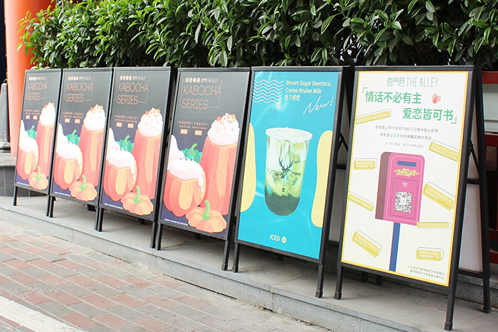 戶外廣告,包含高速路廣告牌子,宣傳海報(bào)和演出舞臺(tái)上公交車分配的各種各樣方式的營(yíng)銷展現(xiàn),均致力于傳達(dá)信息并朝向群眾。