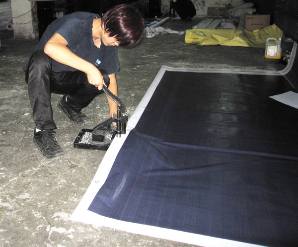 2011年9月19日,我公司生產(chǎn)部噴繪車間新購(gòu)進(jìn)打扣機(jī)一臺(tái)。據(jù)生產(chǎn)部主管王大學(xué)介紹,該設(shè)備能夠?qū)崿F(xiàn)快速打扣。與原始的人工手工打扣方式相比,使用打扣機(jī)打扣能夠極大提升我們雙流噴繪畫(huà)面打扣效率,減少員工工作量,并且打扣質(zhì)量還能夠得到大幅提升。