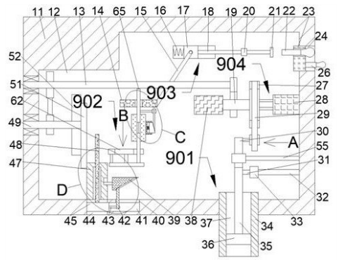 所述工作腔內(nèi)設(shè)有用于漏電以及暴雨導(dǎo)致的水位上升可能會(huì)導(dǎo)致漏電的提醒裝置,所述工作腔內(nèi)設(shè)有用于傳遞動(dòng)力的動(dòng)力裝置。