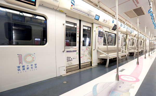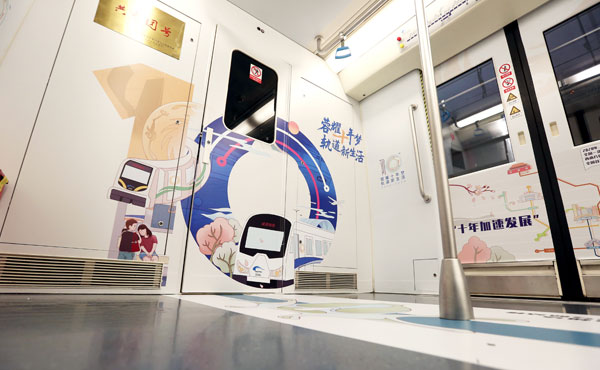 推出的“城市動(dòng)脈”號(hào)主題列車,以“蓉耀十年夢,軌道新生活”為主題。全車通過手繪畫的形式,在車頂、車底、車門、看板區(qū)域。將十年間成都地鐵發(fā)展大事件、暖心感人故事、懷舊老照片、祝福話語逐一呈現(xiàn)。