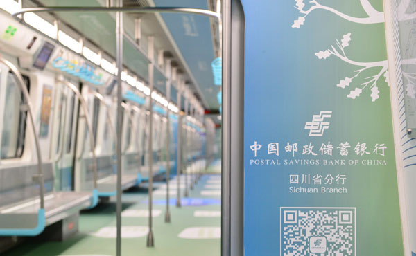 郵儲銀行四川省分行策劃設(shè)計的“郵儲銀行號”地鐵專列,在成都地鐵7號線正式起航。