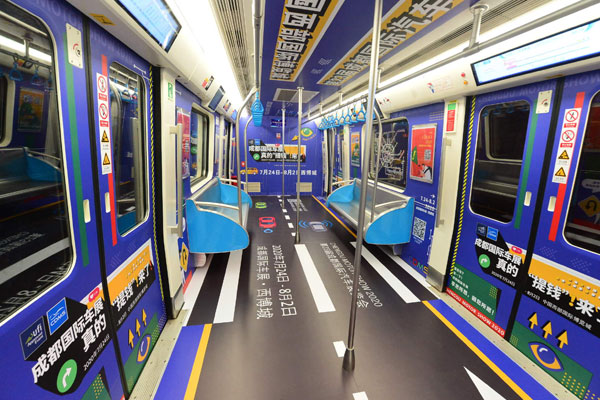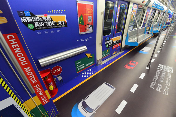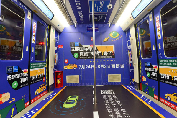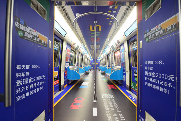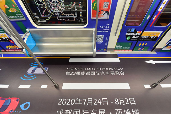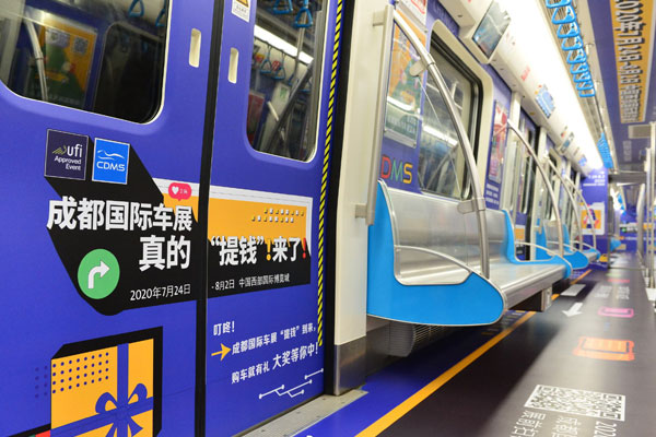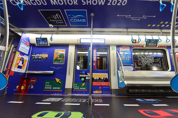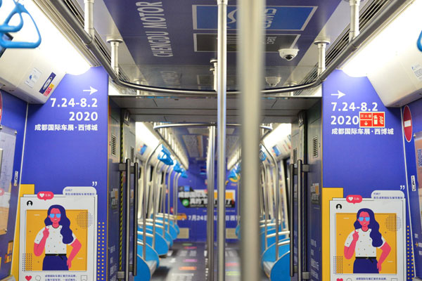近日“成都國際車展號”地鐵專列上線,變身1號線主題車廂亮相,帶有CDMS“標志藍”一路穿梭,整個車廂以明快藍為色彩基因,碰撞色彩、互動插畫的設計表達,營造出年輕潮流、時尚活力的風格,環(huán)繞式超時空的體驗空間,吸引了眾多市民“拍照打卡”呢!