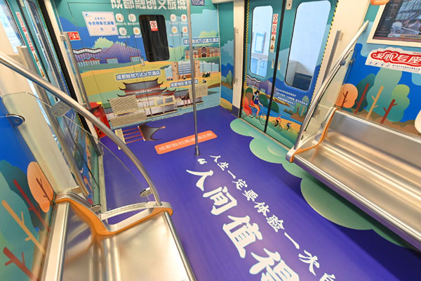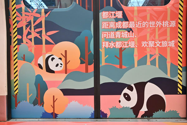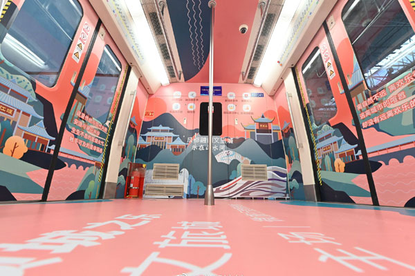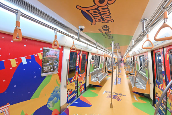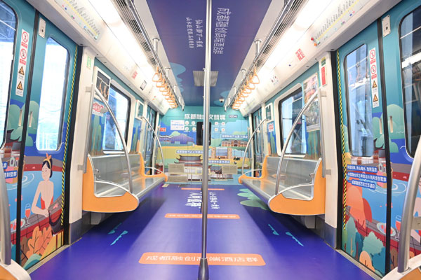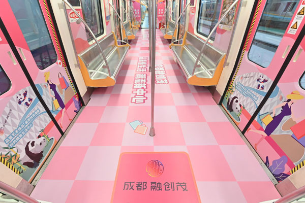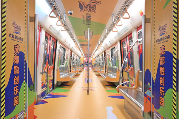 成都地鐵2號(hào)線“天府之國(guó) 傾城之樂(lè)”融創(chuàng)文旅城主題列車(chē),這輛主題列車(chē)充滿童話色彩的融創(chuàng)樂(lè)園.