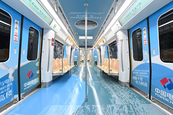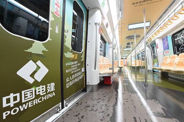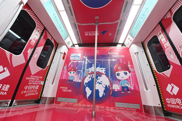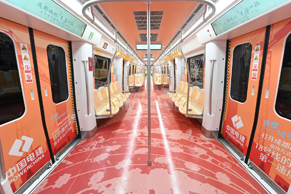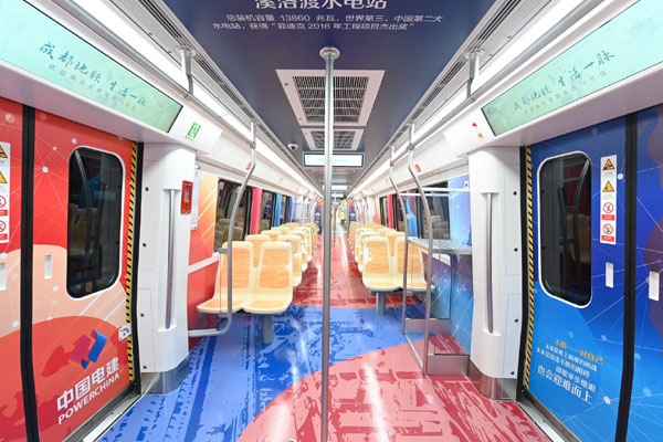由成都中電建瑞川軌道交通有限公司和成都軌道交通集團聯(lián)合打造的“電建號”主題列車,“登陸”18號線?!半娊ㄌ枴敝黝}列車以“穿山越嶺,遇見未知風(fēng)景”為主題,展現(xiàn)中國電建在建設(shè)清潔能源、營造綠色環(huán)境、服務(wù)智慧城市方面的突出成果。