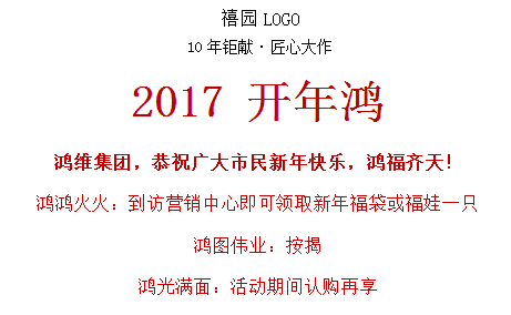 西苑在2016年取得了優(yōu)異的銷(xiāo)售業(yè)績(jī),新年即將來(lái)臨,西苑應(yīng)該以自豪和自豪為2016畫(huà)上完美的句號(hào),以嶄新的面貌迎接即將到來(lái)的2017年。元旦和春節(jié)是中國(guó)文化中最重要的傳統(tǒng)節(jié)日。在此期間,西苑作為黃山中心城區(qū)的標(biāo)桿房地產(chǎn)項(xiàng)目,要以?xún)?yōu)秀的現(xiàn)場(chǎng)氛圍包裝,突出項(xiàng)目的品質(zhì)和服務(wù),以“家的本質(zhì)”為主導(dǎo)理念,滿(mǎn)足傳統(tǒng)市民,給他們強(qiáng)烈的歸屬感。