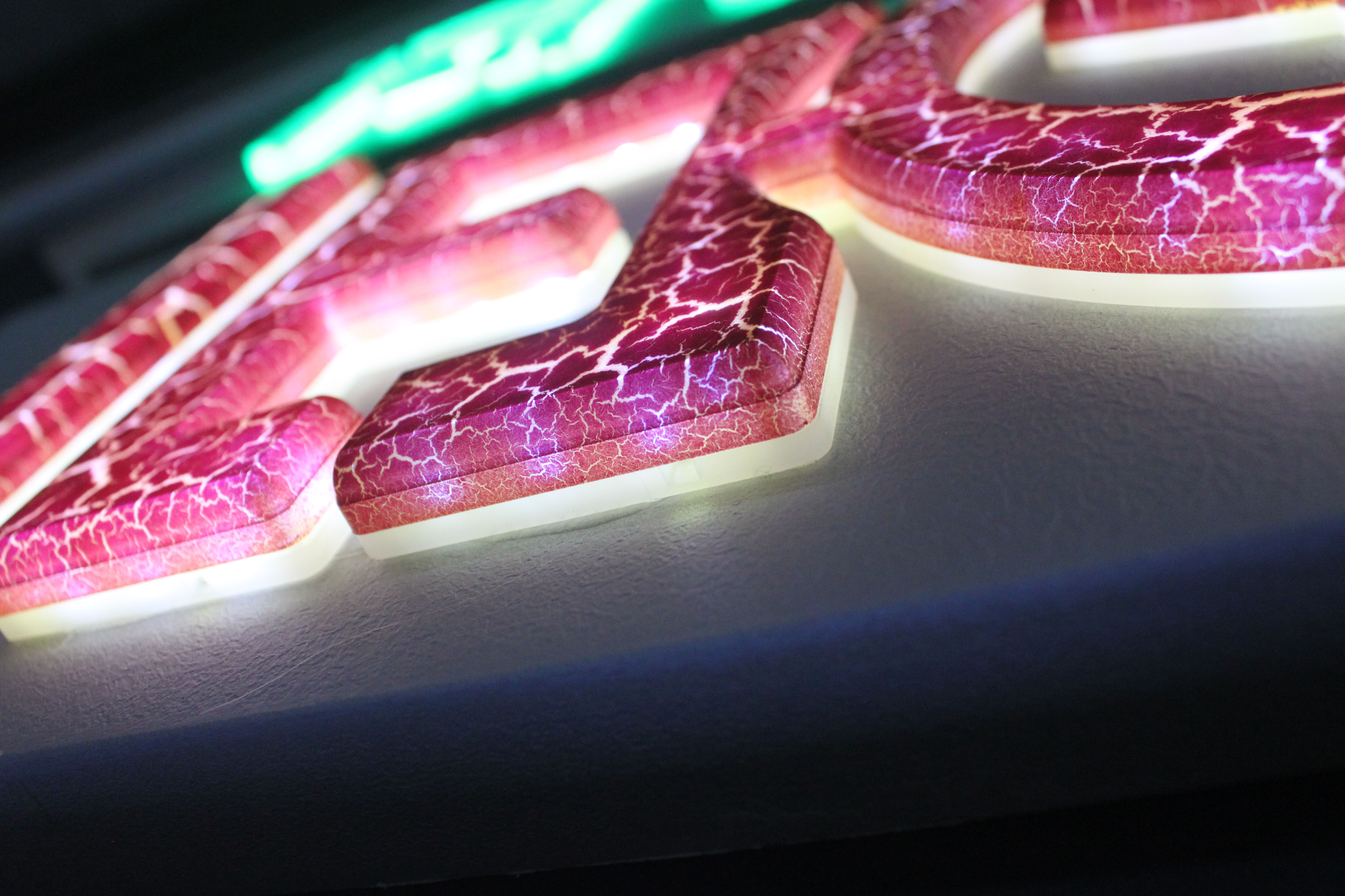 吸塑字是面板由亞克力板通過壓塑、鐵皮、不銹鋼底盒、膠邊、內(nèi)套邊組成。特點:表面亞克力壓塑成型,所以面板明顯立體結(jié)構(gòu),發(fā)光立體、色彩鮮艷。分類:吸塑字根據(jù)材料會區(qū)分為一般吸塑字、鐵皮內(nèi)套吸塑字、不銹鋼吸塑字等。