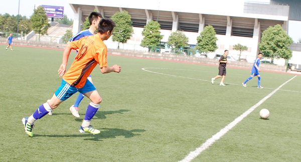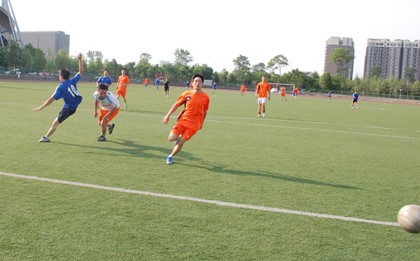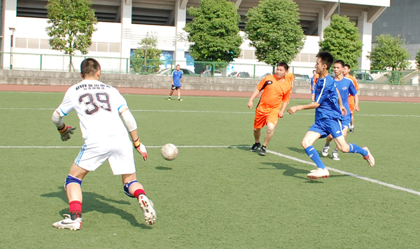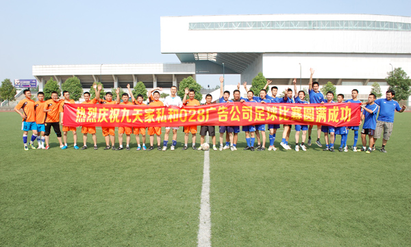 昨天,天高氣爽,萬里無云。九天家私和零貳捌廣告有限公司按照約定的時間(2013年5月21日下午4:00-6:00)來到了雙流縣體育館足球場。因為雙方都是利用工作之余來參加比賽的,為此按時來到足球場便投入到緊張的比賽中。只見雙方的球員生龍活虎,前鋒、中鋒、后衛(wèi)個個死咬不放,場面即緊張又活潑,啦啦隊的吶喊聲在空曠的足球場上響起“零貳捌加油!九天加油!”進球了!進球了!零貳捌首先進球,不到5分鐘的時間又進球了。九天死死咬著緊追不舍,奮力拼搏,這時他們也進球了,雙方的分?jǐn)?shù)不差上下,完了!九天進球3分了,球場上的隊員看見九天比零貳捌多1分。場面更是緊張,更是激烈,在關(guān)鍵的時刻,只見零貳捌足球隊的隊長徐宏彬單刀赴會,一個人邊帶球向球門猛攻,飛起他的香港腳對準(zhǔn)球門就是一腳,進了!進了!拉拉隊員在球外跳起來了,球場上響起了熱烈的掌聲,終于分?jǐn)?shù)持平。比賽時間已到,雙方的球員累得上氣不接下氣,友誼第一,比賽第二,就這樣最好!