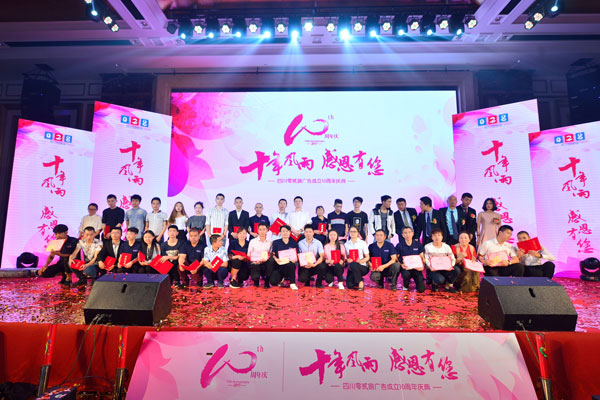 5月10日,以“十年風(fēng)雨,感恩有您”為主題的四川零貳捌廣告有限公司成立十周年慶典儀式于成都星辰金熙皇家酒店隆重開幕!該慶典邀請了集團董事、供應(yīng)商和客戶代表,以及對公司成長做出巨大貢獻的家人們!