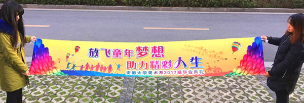 成都彩色條幅制作廠家 我們四川零貳捌成都廣告公司新進(jìn)購(gòu)了一臺(tái)熱升華機(jī)器,這臺(tái)機(jī)器可以說(shuō)是熱轉(zhuǎn)印機(jī)器的加強(qiáng)升級(jí)版,不只是可以制作單色條幅還可以制作彩色條幅了,除了條幅還可制作注水旗,刀旗,迎風(fēng)旗等,畫面更加的清晰,長(zhǎng)時(shí)間使用不變色,那下面我們就來(lái)給大家講一講展會(huì)慶典常用的條幅廣告: