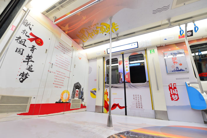 新中國成立70周年成都地鐵主題列車車廂內(nèi)車身貼畫面制作安裝