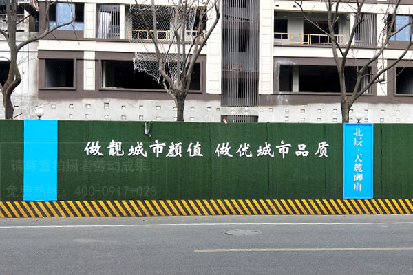 現(xiàn)在房地產(chǎn)項(xiàng)目圍墻圍擋廣告制作多是采用假草坪綠植來(lái)進(jìn)行制作,這種用植被組成的工地圍擋也稱為綠籬式圍擋(