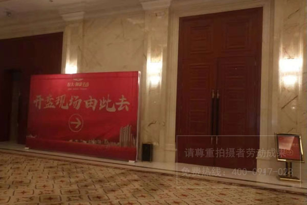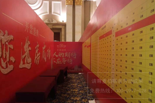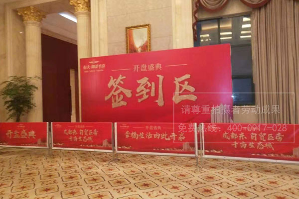 恒大地產(chǎn)御景半島開盤盛典算價區(qū)背景墻桁架搭建/路欄噴繪畫面制作安裝
