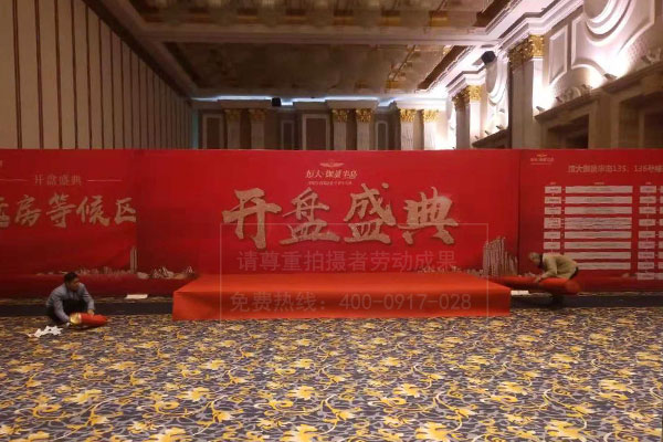 恒大御景半島開盤盛典內(nèi)場舞臺布置/桁架背景板搭建制作