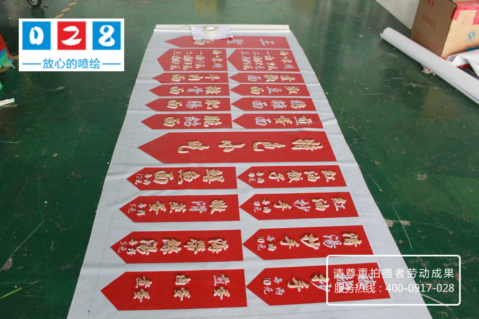 工藝采用:打印噴繪布作為安裝底板,亞克力雕刻字粘貼底板制作而成。