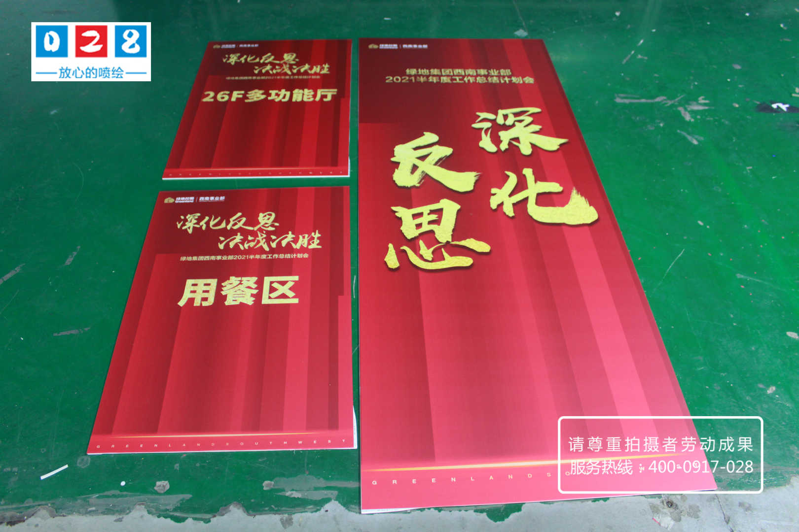 綠地集團西南事業(yè)部門2021年半年度工作總結(jié)計劃會流程說明牌制作,采用KT板裱背膠UV噴繪寫真