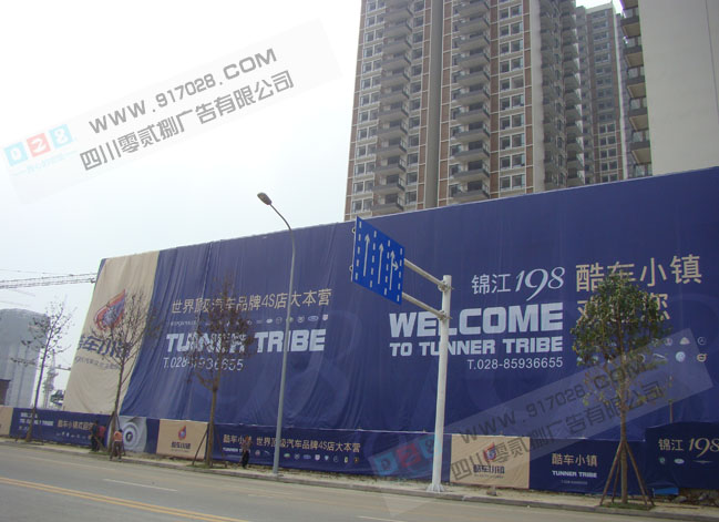 2010年10月在三圣鄉(xiāng)建的酷車小鎮(zhèn),四川零貳捌廣告有限公司為酷車小鎮(zhèn)約1萬(wàn)平方米噴繪安裝實(shí)照。