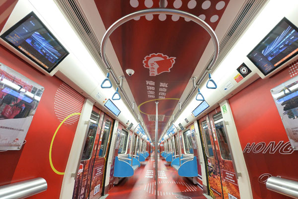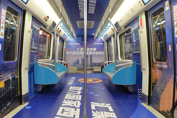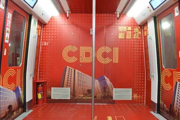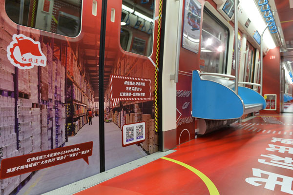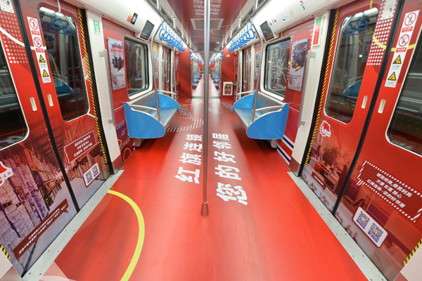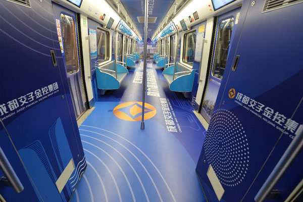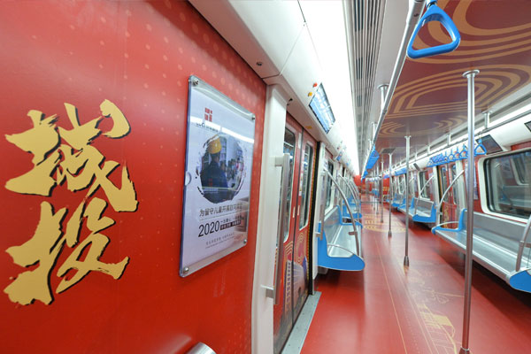 成都地鐵1號(hào)線(xiàn)扶貧擔(dān)當(dāng)號(hào)主題列車(chē)車(chē)廂內(nèi)照片