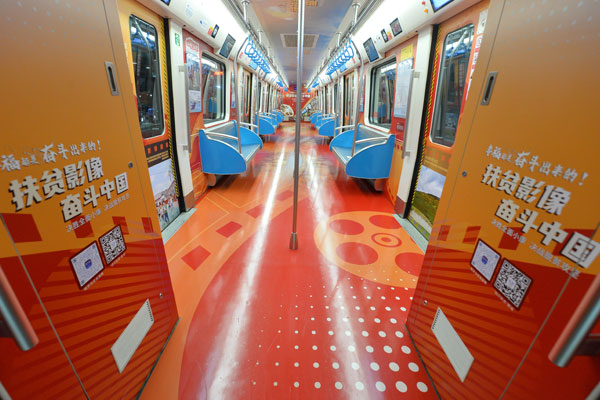 10月17日是第7個國家扶貧日,2020四川脫貧攻堅“奮進號”主題列車首發(fā)儀式當日在成都舉行。該主題列車以多媒體手段集中展示了四川高原藏族聚居區(qū)、大小涼山彝區(qū)、秦巴山區(qū)、烏蒙山區(qū)脫貧前后的圖片和視頻。據(jù)了解,該主題列車在成都地鐵1號線開行,將一直運營至2020年底。