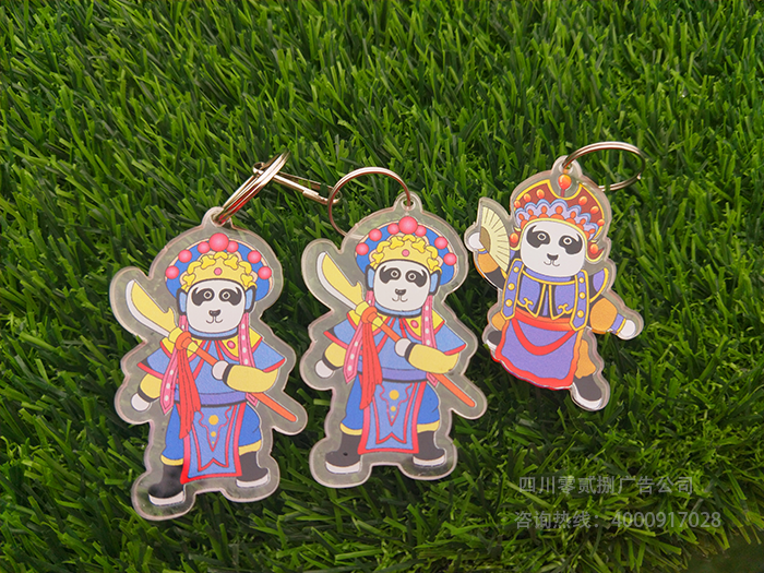 當(dāng)然鑰匙扣的圖案也是千奇百怪,多姿多樣的,色彩上也是五彩斑斕??梢允俏覀冎袊鴤鹘y(tǒng)文化的戲曲人物,也可以是自然環(huán)境中的花草樹木,以及現(xiàn)在偶像愛豆的頭像鑰匙扣,四川零貳捌廣告有限公司可以根據(jù)客戶的來圖制作出客戶喜歡的產(chǎn)品哦,歡迎您的來圖。