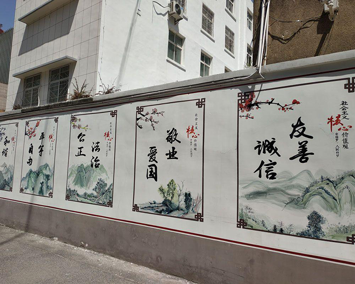 文化墻的繪畫內(nèi)容也是比較廣泛的,在戶外的文化墻上一般會采用一些鄉(xiāng)村或城市文化、歷史以及也可以包括我們中國的傳統(tǒng)美德‘孝’。而戶內(nèi)文化墻,一般會圍繞該地點的環(huán)境來選擇一些適用的內(nèi)容來設(shè)計而成。