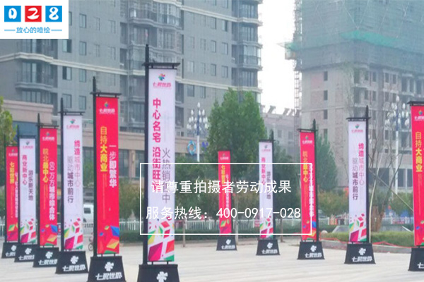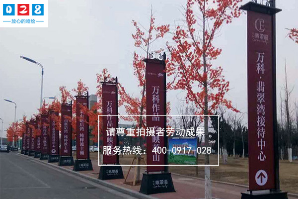 道旗又可以稱作為燈桿旗,一般情況下是指安裝在道路兩旁的路燈燈桿上的廣告旗幟。這類道旗的廣告效應在短期內(nèi)是可以看到明顯的效果的,首先它的地理位置就非常的不錯,經(jīng)常性的出現(xiàn)在人們的視野之下,可以加深人們的一個視覺印象,從而達到一定的效果。