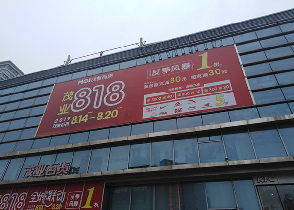 商場(chǎng)外墻廣告巨幅是什么材質(zhì)?
