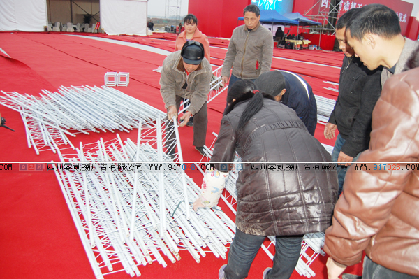 行架畫面制作安裝、安裝空飄、鋪紅地毯、禮儀接待