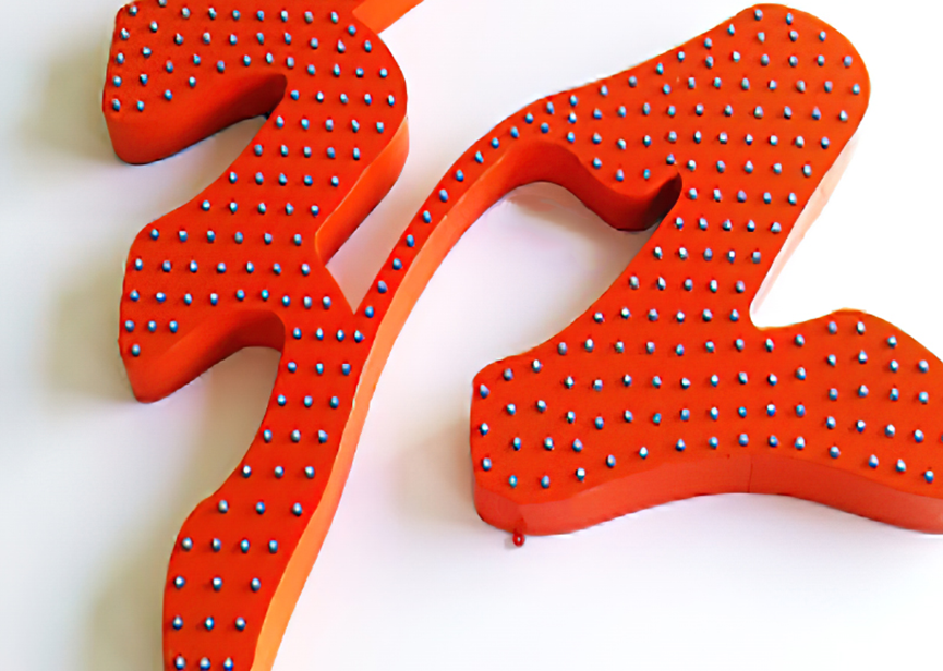沖孔字又叫鐵皮字,沖孔字要在上面裝上很多的小燈因此來(lái)達(dá)到字體發(fā)光的效果.沖孔字做的廣告可以體現(xiàn)出品牌的特點(diǎn),很高的提升產(chǎn)品的檔次。