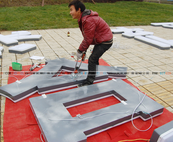 安裝工人正在對吸塑字進行排線工作