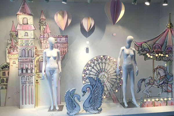 服裝店櫥窗氛圍KT板廣告畫面布置安裝